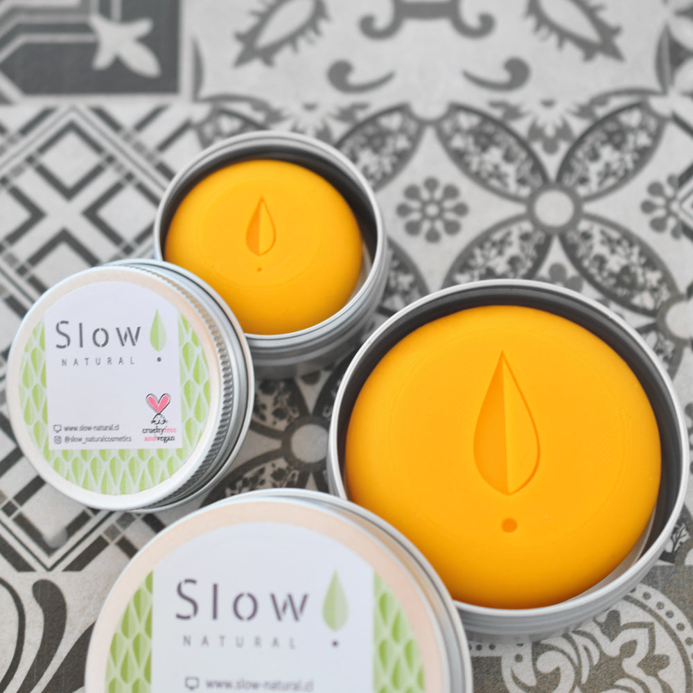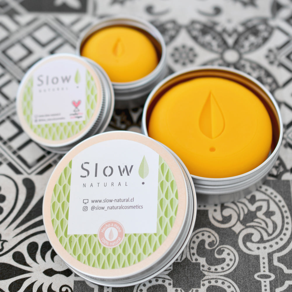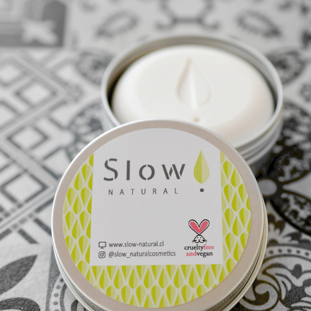 Desarrollamos el formato sólido de nuestros productos y envases reutilizables, para reducir la cantidad de basura que producimos. Por ejemplo: al usar 1 shampoo Slow en barra, evitas botar 2 a 3 botellas de 200 ml de shampoo tradicionales.