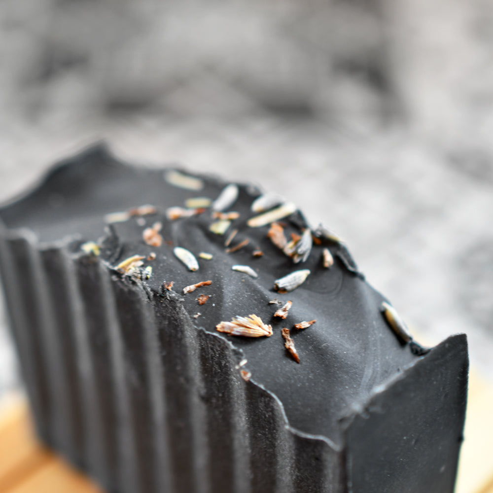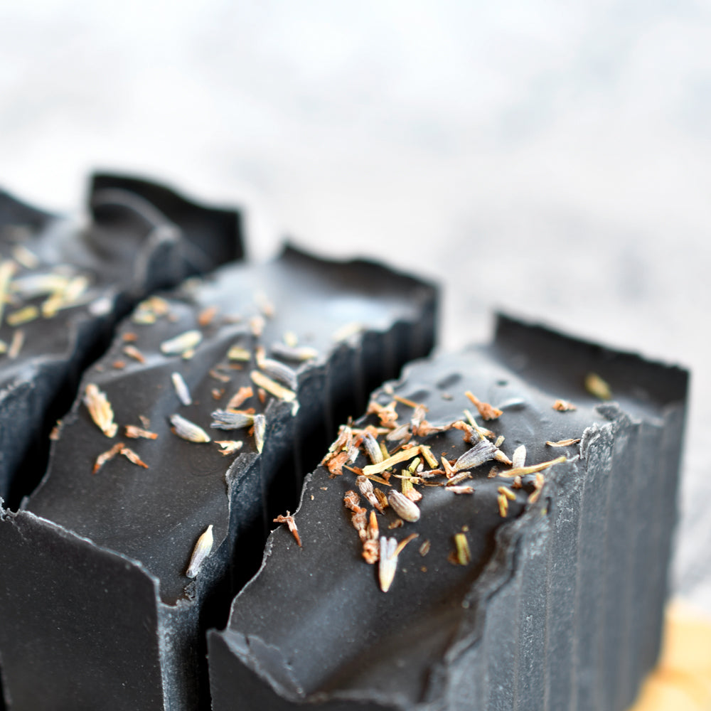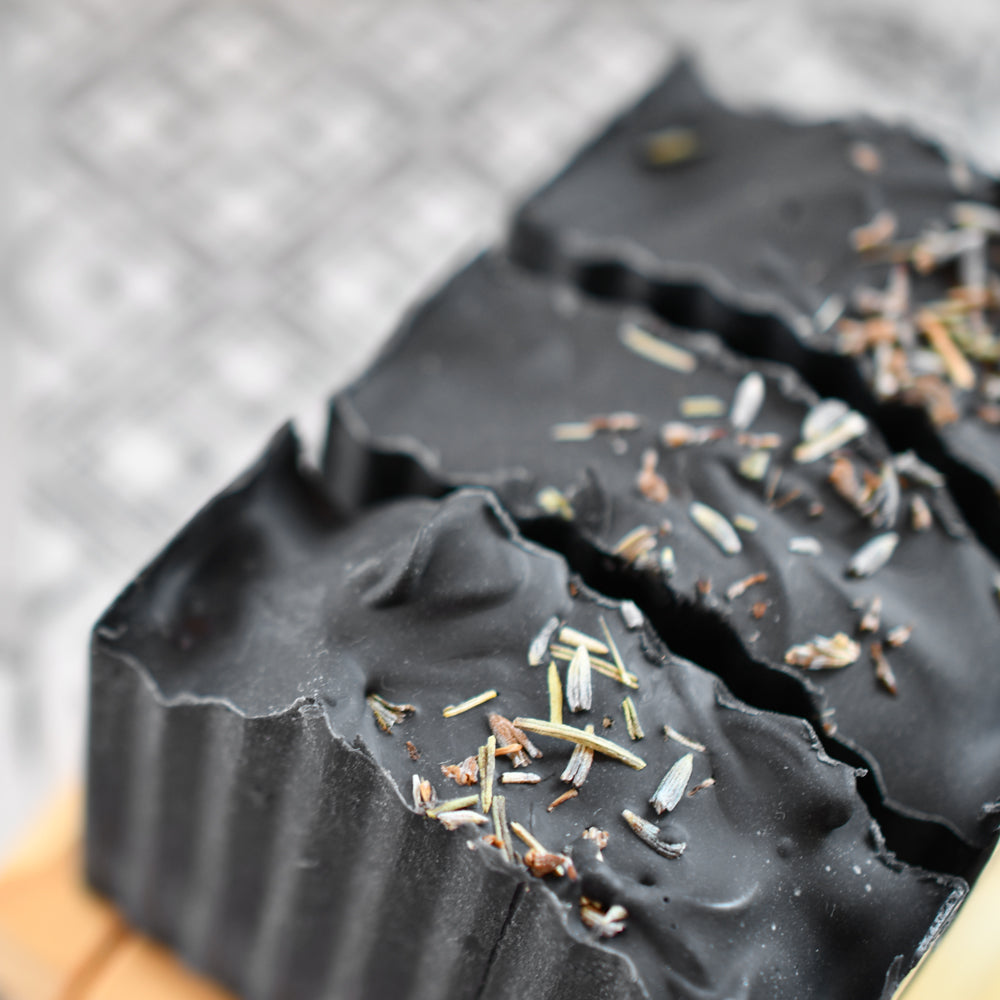 Jabón saponificado de carbón activado con aceite esencial de romero es un jabón ideal para pieles grasas, con acné ya que limpia en profundidad; equilibrando, purificando y aportando luminosidad a la piel. Además es de gran acción bacteriostetática, lo que lo convierte en un excelente antiséptico (gracias a la acción del aceite esencial de romero). El carbón activado es un producto de origen vegetal que tiene la propiedad de absorber toxinas y químicos.