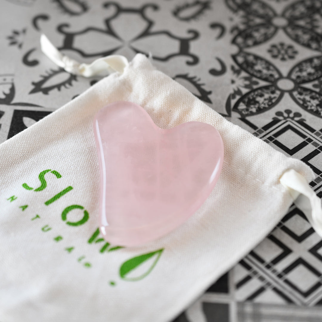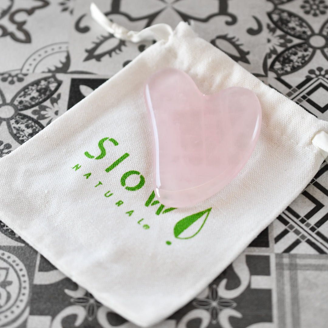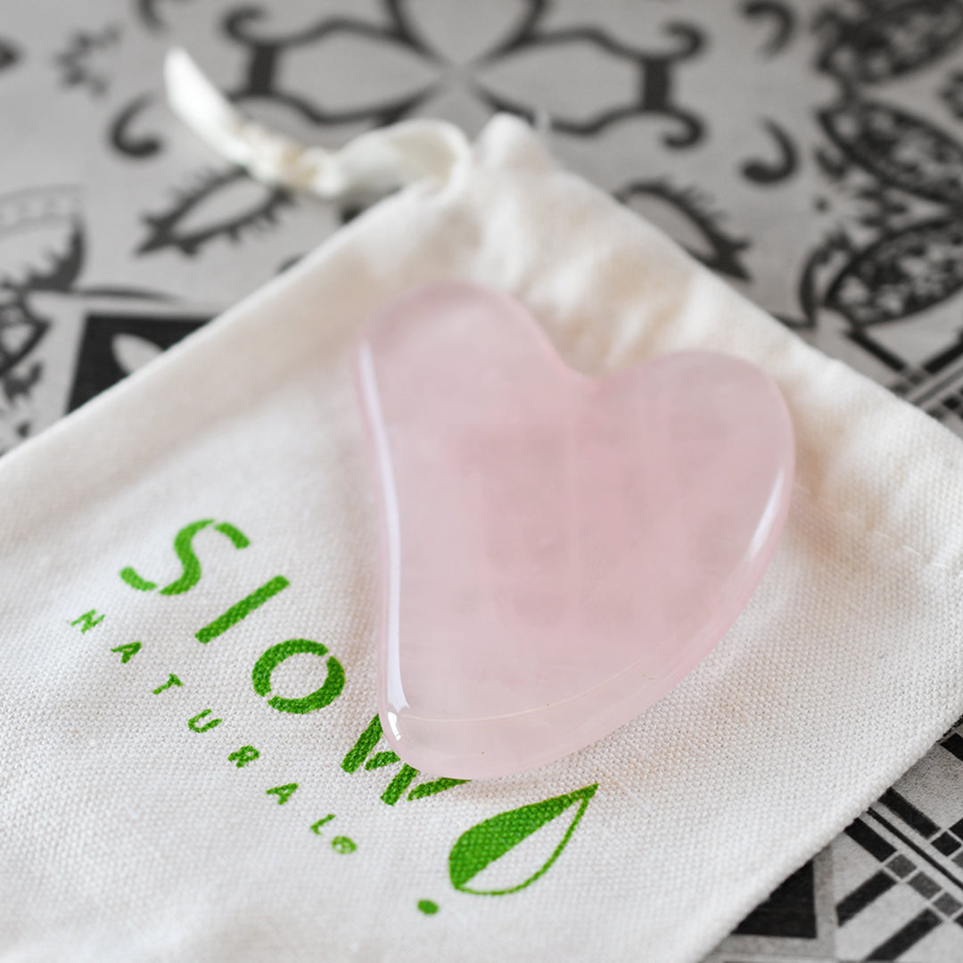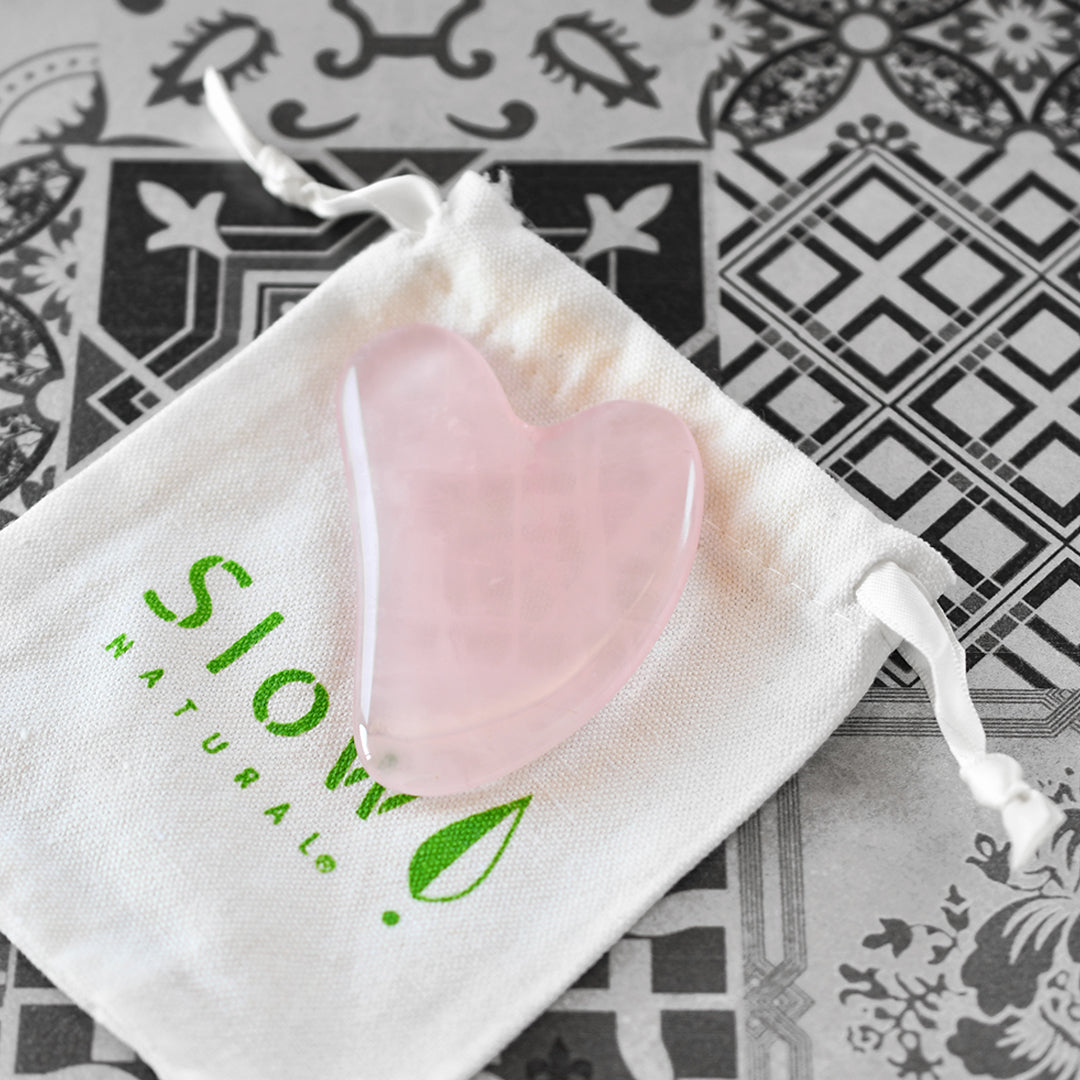 La piedra Gua Sha de cuarzo rosa es un masajeador facial y corporal en forma de corazón, de origen oriental. Su función es la de favorecer el drenaje linfático, y estimular la circulación de los músculos faciales y del cuello, ayudando así a atenuar las arrugas y ralentizar el envejecimiento cutáneo. Es una suerte de gimnasio para el rostro.